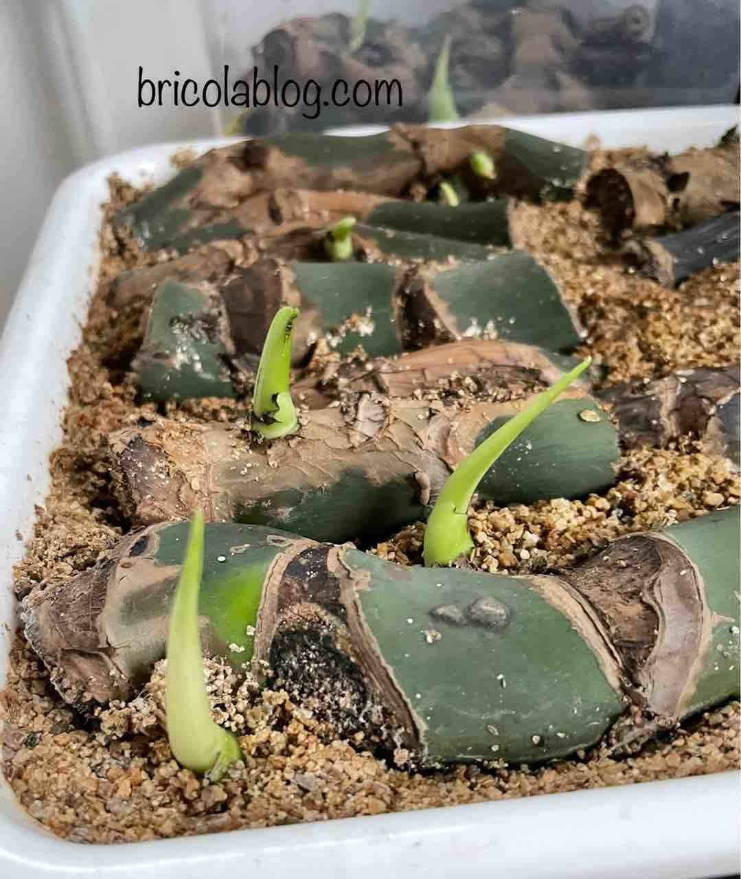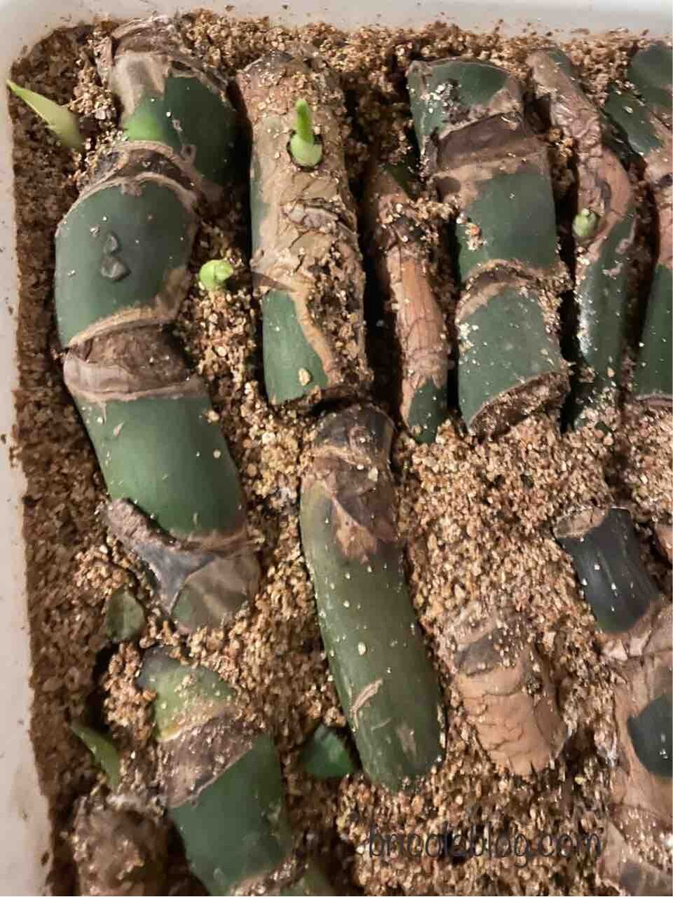 これ、葉っぱは子供の割れてないのからリスタートかなーと思ってましたら、最近伸び始めた、1番先端だった子(手前)が、