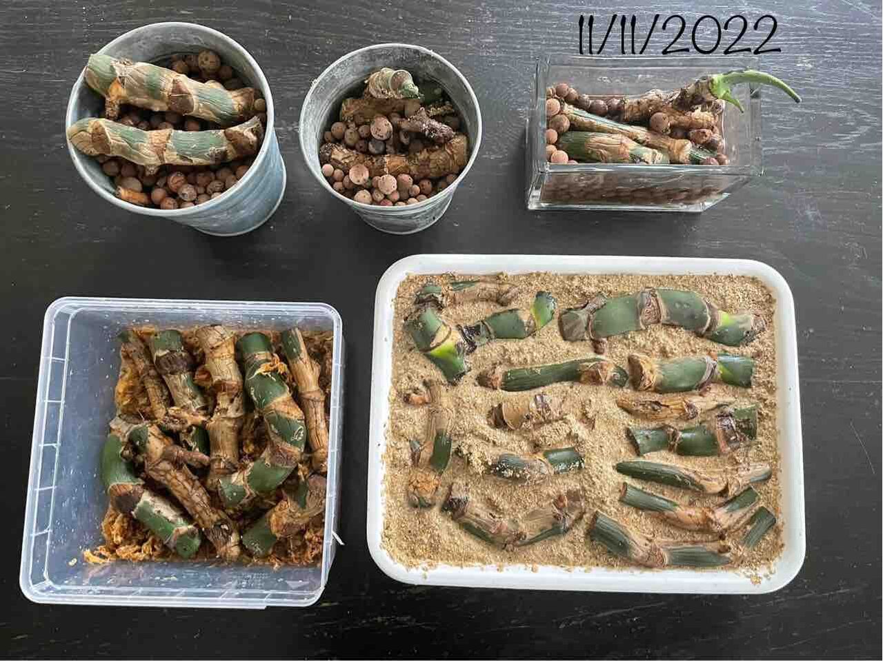 それを、小さくまとめたくて細かくして、実験的にハイドロボール、バーミキュライト、水苔で成長を比べてみています。