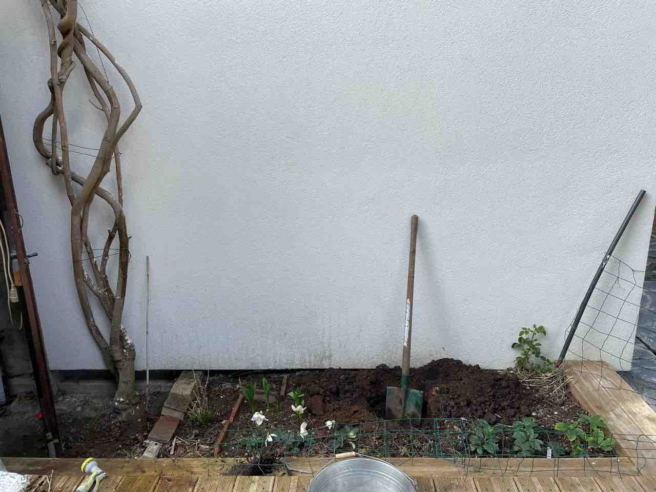 外壁工事で駄目にされた花壇の土を総入れ替えしたので、こちらに植えます。